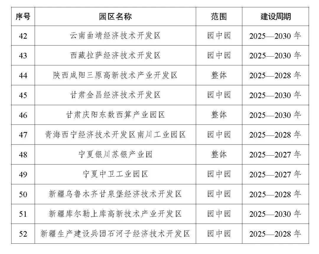 按照《国家发展改革委工业和信息化部国家能源局关于开展零碳园区建设的通知》(发改环资〔2025〕910号)要求,经园区申报、地方推荐、专家评审、部门会商等程序,确定了国家级零碳园区建设名单(第一批),共纳入52个园区。