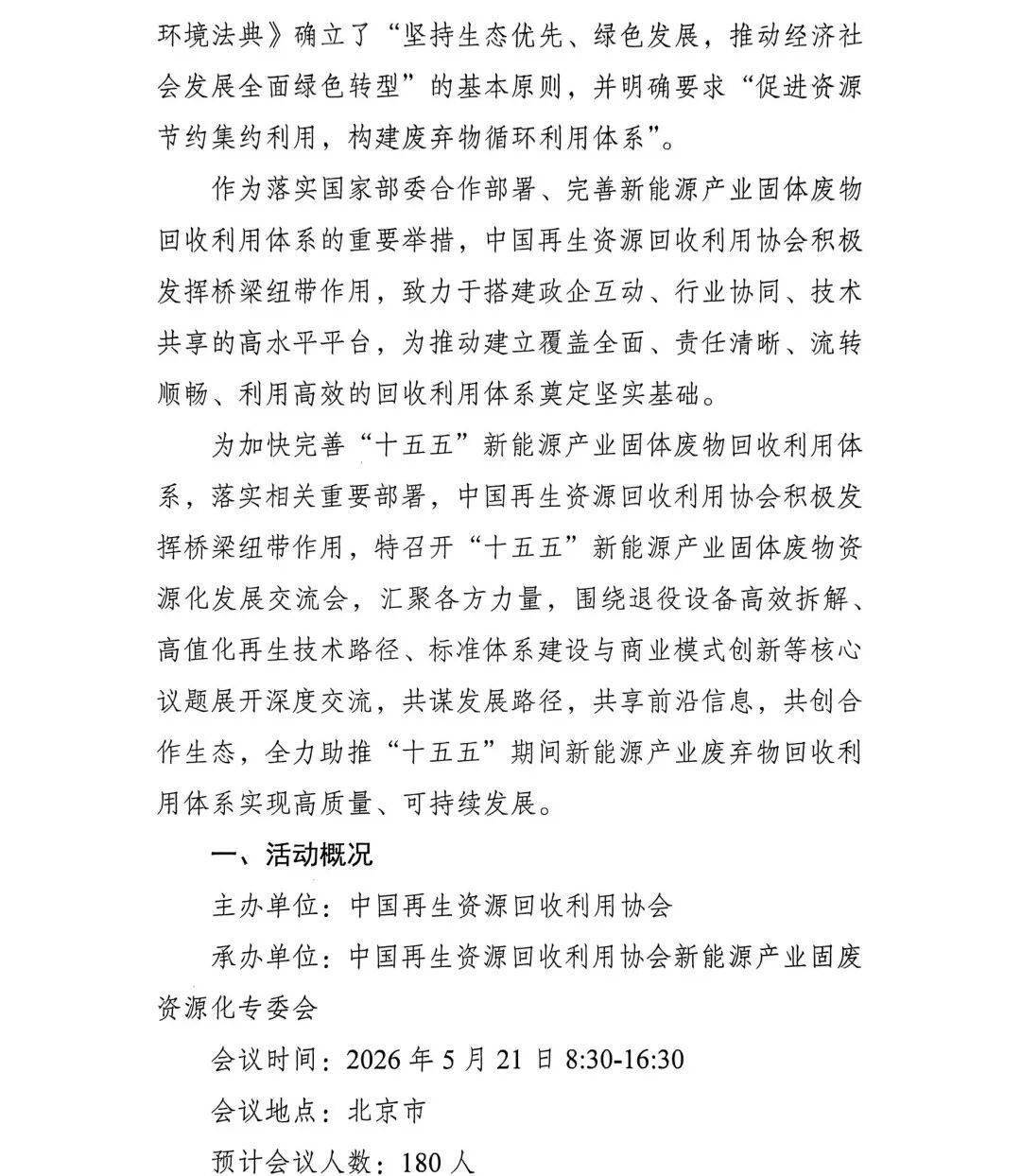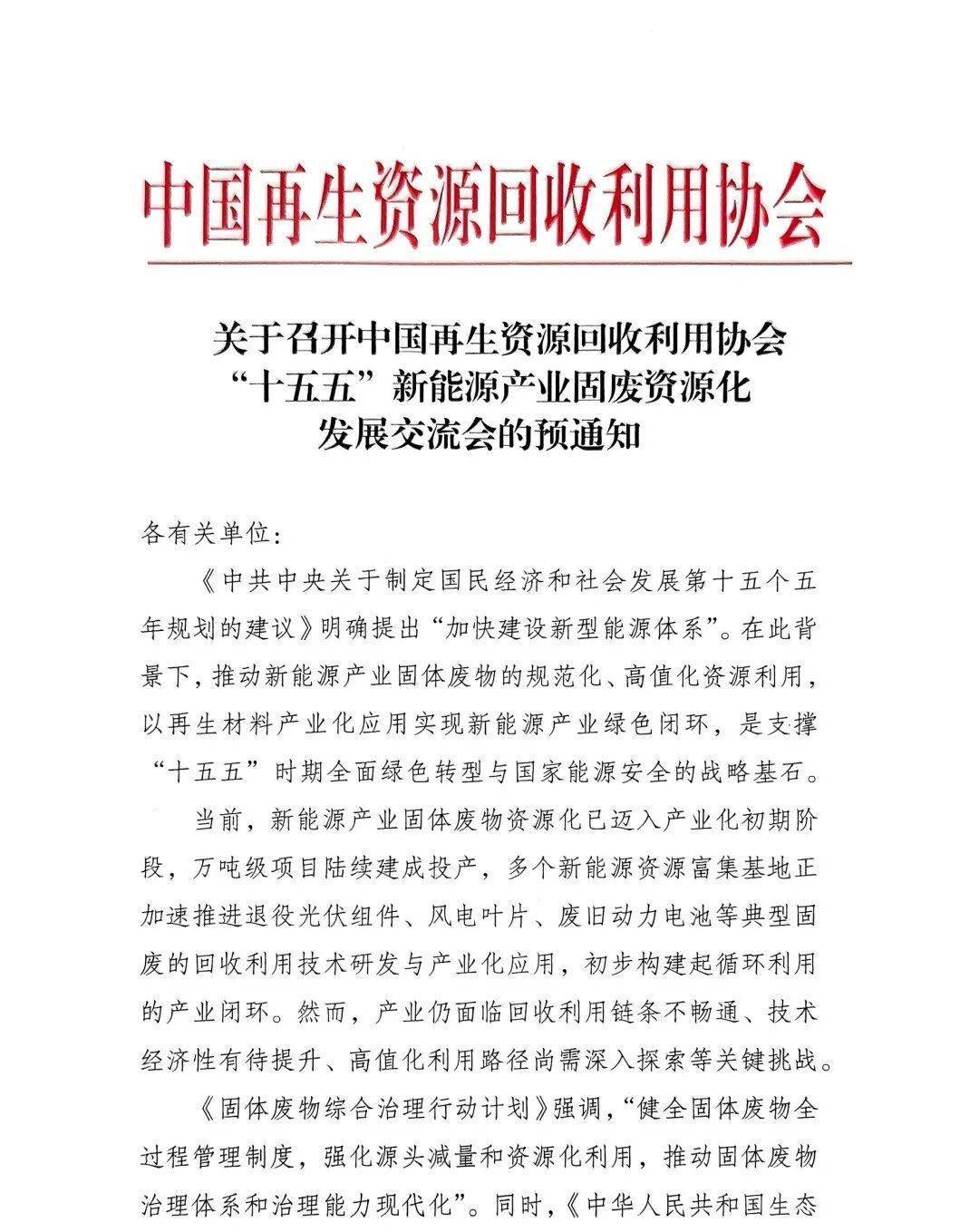 关于召开中再生协会“十五五”新能源产业固废资源化发展交流会的预通知