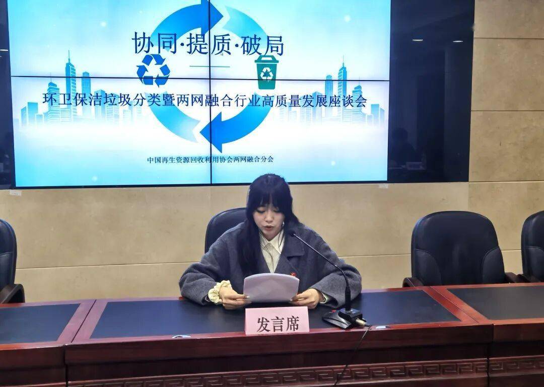 最后,会议呼吁全体与会者以此次座谈会为契机,将会议讨论成果转化为实际行动,加强行业内外联动协作,凝聚发展合力,共同为构建更高效、绿色、智能的再生资源回收体系贡献力量,携手开创两网融合行业高质量发展的新局面。