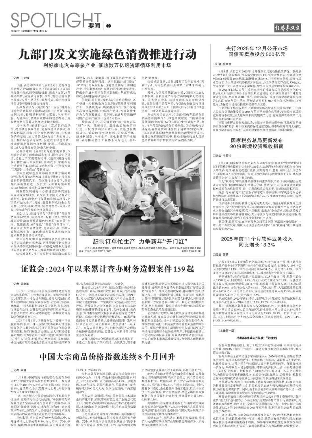 新华社北京1月6日电 《经济参考报》1月6日刊发记者王文博采写的文章《九部门发文实施绿色消费推进行动》。文章称,日前,商务部等9部门发布《关于实施绿色消费推进行动的通知》(下称《通知》)。《通知》围绕健全绿色消费激励机制,提出7方面20条具体举措,涵盖家电家装、汽车、餐饮住宿等多个领域,涉及产品供给、消费模式、循环回收等环节,同时明确金融支持政策。